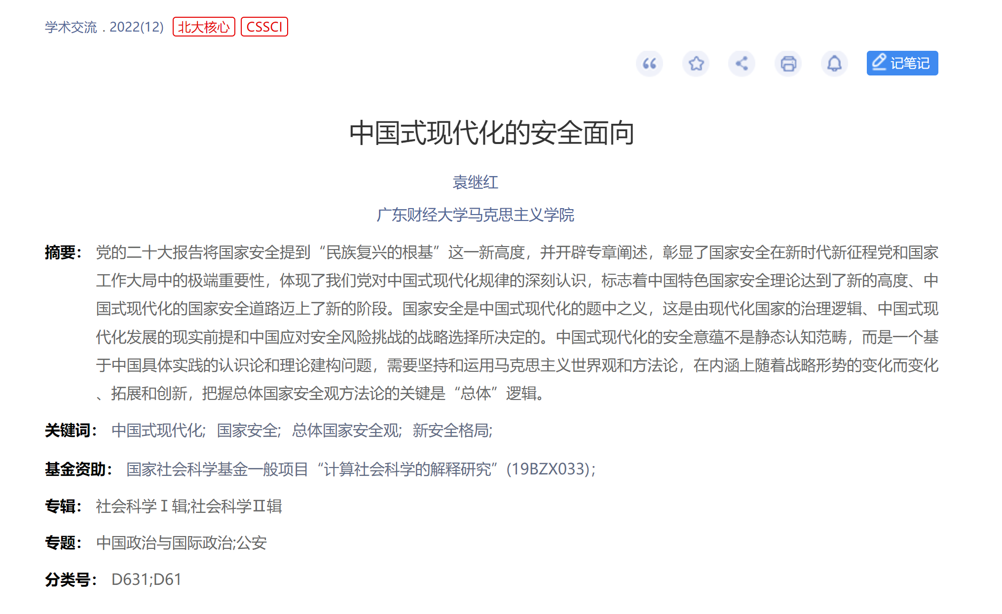 摘要:党的二十大报告将国家安全提到“民族复兴的根基”这一新高度,并开辟专章阐述,彰显了国家安全在新时代新征程党和国家工作大局中的极端重要性,体现了我们党对中国式现代化规律的深刻认识,标志着中国特色国家安全理论达到了新的高度、中国式现代化的国家安全道路迈上了新的阶段。国家安全是中国式现代化的题中之义,这是由现代化国家的治理逻辑、中国式现代化发展的现实前提和中国应对安全风险挑战的战略选择所决定的。中国式现代化的安全意蕴不是静态认知范畴,而是一个基于中国具体实践的认识论和理论建构问题,需要坚持和运用马克思主义世界观和方法论,在内涵上随着战略形势的变化而变化、拓展和创新,把握总体国家安全观方法论的关键是“总体”逻辑。