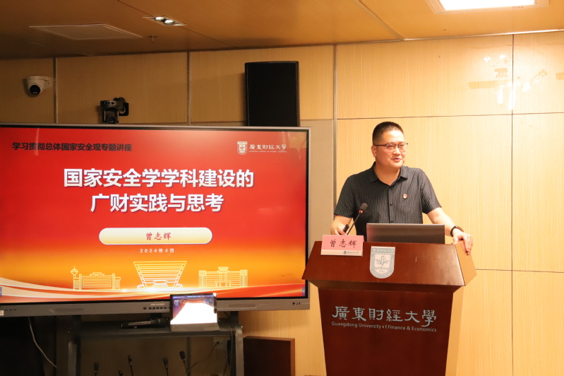 曾志辉以“国家安全学学科建设的广财实践与思考”为主题,向现场师生讲授了一节专业性强而又接地气的“思政课”。他从总体国家安全观概述、粤港澳大湾区的国家安全战略地位、明胜m88官网国家安全学学科建设与成效,以及服务国家安全与广财未来担当”四个维度,系统阐述了总体国家安全观的发展历程和重要意义,介绍了学校在国家安全学学科建设的生动实践和未来发展前景,提出了“换道超车、乙方思维、学科龙头”3点深刻思考感悟。