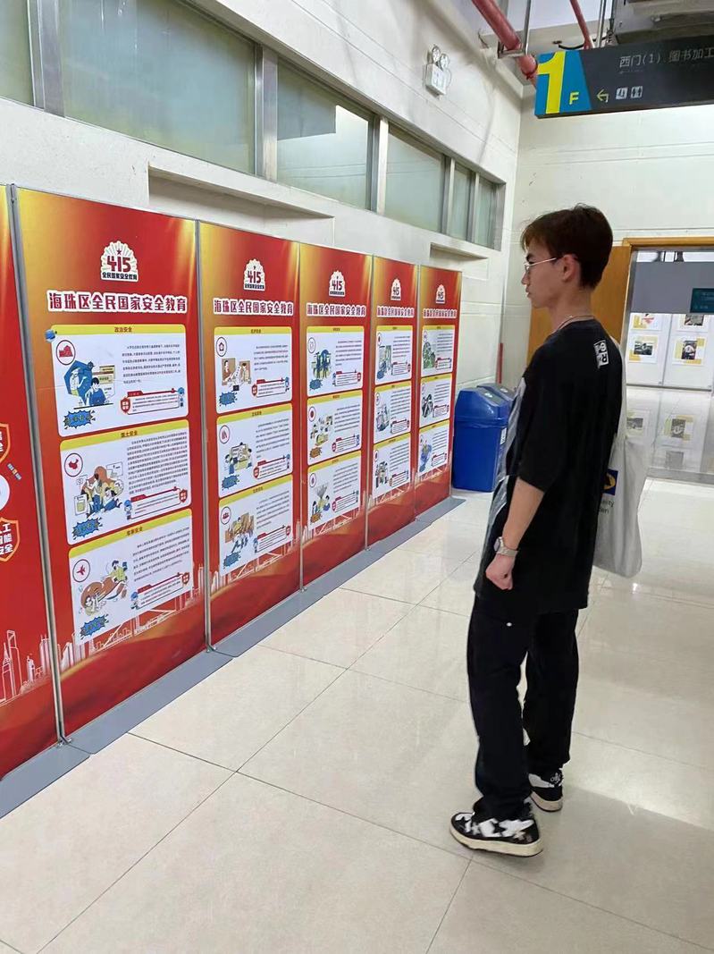 2023年4月15日是我国第八个全民国家安全教育日,为深入贯彻落实总体国家安全观,有效推动国家安全和保密宣传教育走深走实,海珠区委国安办、海珠区委保密办、海珠区密码管理局联合举办“广州市海珠区4·15全民国家安全教育展”巡展活动。4月19日,巡展在广州校区图书馆一楼展出。