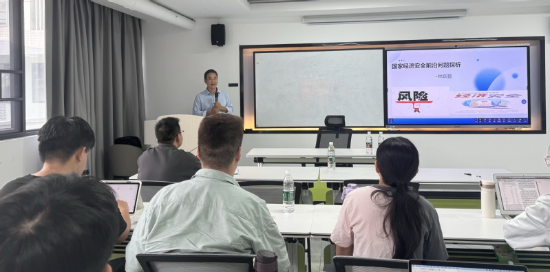 讲座伊始,林跃勤教授以“如何理解安全前沿问题”为切入点,深入浅出地阐释了安全前沿问题的内涵和外延。随后,林跃勤教授聚焦“新时期国家经济安全重大前沿问题”“风险基本分析方法”“安全体系与能力建设策略”三大主题透彻分析了当前全球经济形势复杂多变背景下,我国经济安全面临的挑战和机遇,阐述了构建系统完备、科学规范、运行有效的国家安全体系的必要性和紧迫性。最后,林跃勤教授耐心解答了师生们提出的问题,并结合经验,分享了自身对于国家经济安全前沿问题独特的见解。