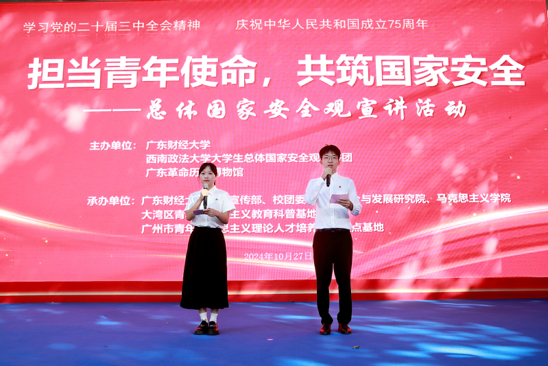 为全面贯彻总体国家安全观,增强全民国家安全意识,10月27日,“担当青年使命,共筑国家安全”——总体国家安全观宣讲活动将于广州起义纪念馆举办。活动由广东财经大学、西南政法大学大学生总体国家安全观宣讲团、广东革命历史博物馆联合主办,本次活动是跨省馆校联动、校校联动,共同推动总体国家安全观宣传教育的首次尝试。