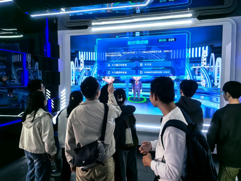 随后,师生们聚焦“夯实国家安全社会基础,汇聚维护国家安全强大合力”主题,在通过互动装置、漫画长廊等形式普及《反间谍法》《网络安全法》法律法规展示中,踊跃参与了国家安全知识挑战赛,通过趣味问答、情景模拟、热烈讨论等巩固学习成果,提高警惕意识。