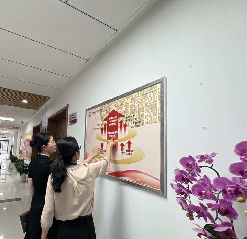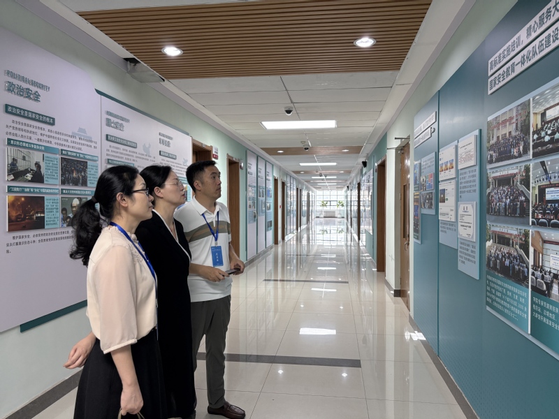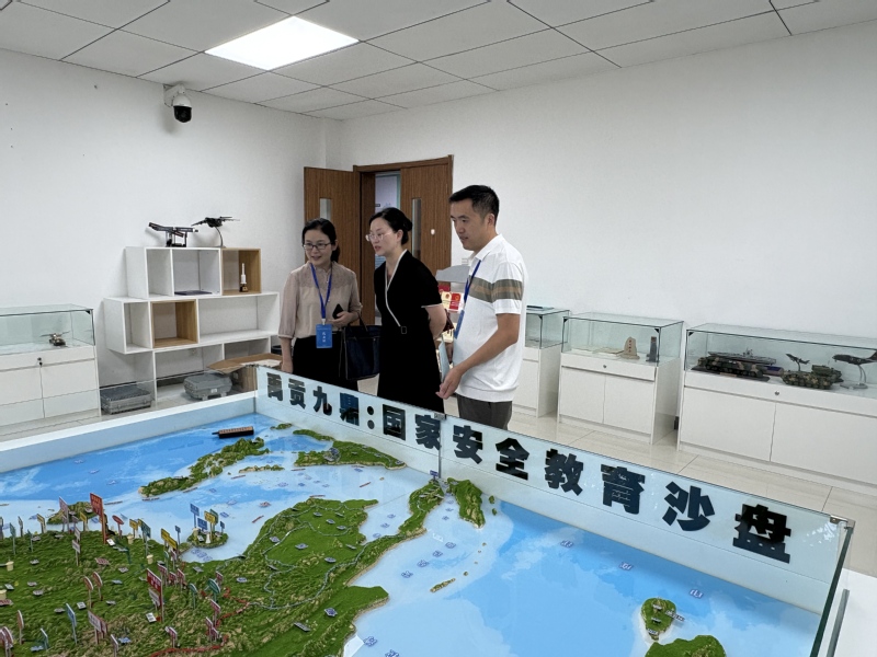 陕西师范大学国家安全学院阮小飞书记首先带领大家参观国家安全学院的国家安全教育创新实践历程、国家安全教育文化墙、国家安全教育沙盘等。