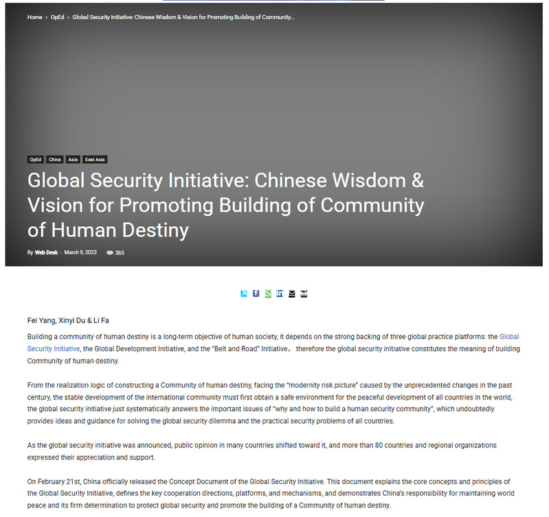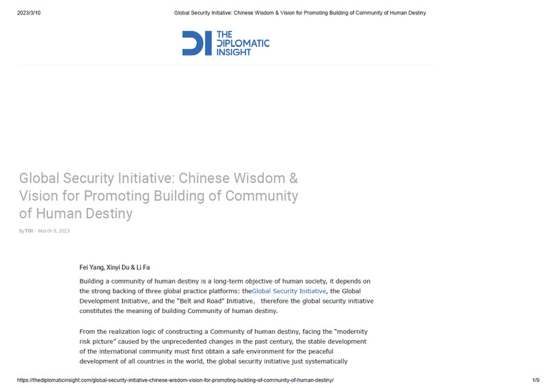 杨飞,杜心怡,李发:全球安全倡议:推动构建人类命运共同体的中国智慧与构想