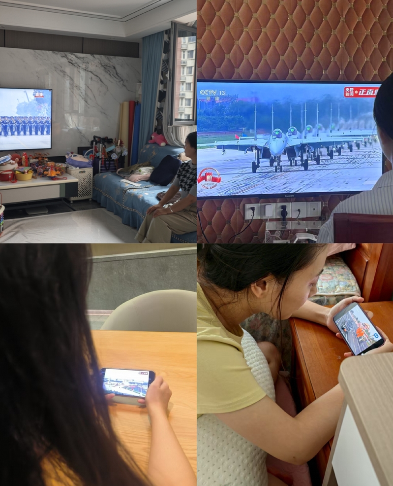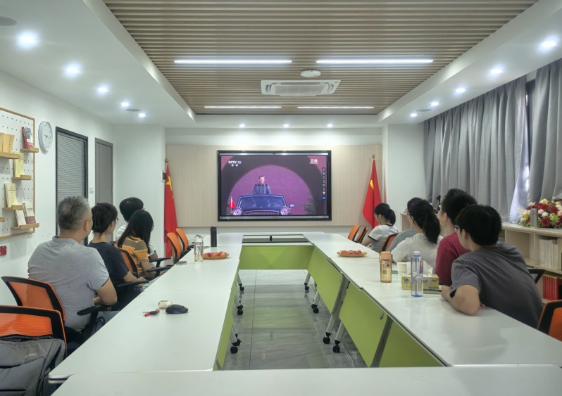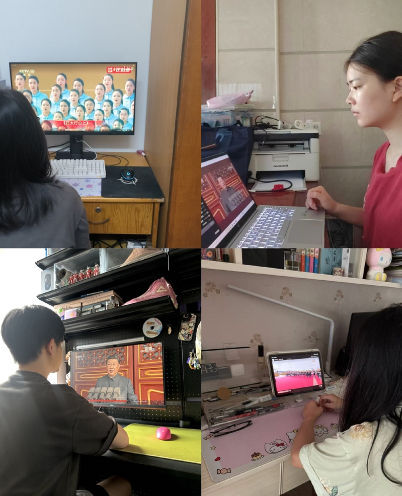 马克思主义理论、国家安全研究全体在校研究生和学院党委书记张小洁,早早就在学院105会议室整齐就座,认真聆听习近平总书记发表的重要讲话,深刻感悟总书记重要讲话中所蕴含的历史意义和时代精神。随后阅兵式正式拉开帷幕,大家全神贯注,神情庄重,认真观看每一个环节。整齐划一的徒步方队、威武先进的装备方队、翱翔天际的空中梯队,依次通过天安门广场,接受党和人民的检阅。师生们为祖国的繁荣昌盛感到无比骄傲,并分享观看的感受和体会。